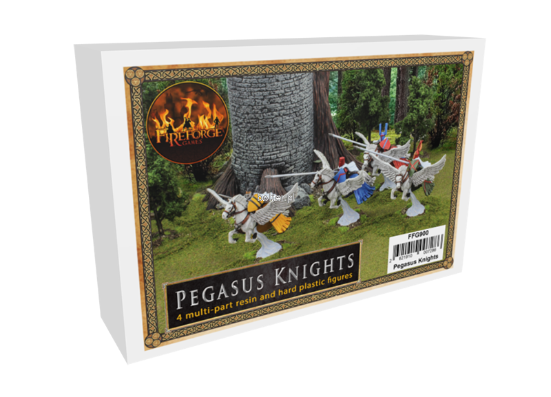 This box allows you to assemble 4 plastic Knights on resin Pegasus.