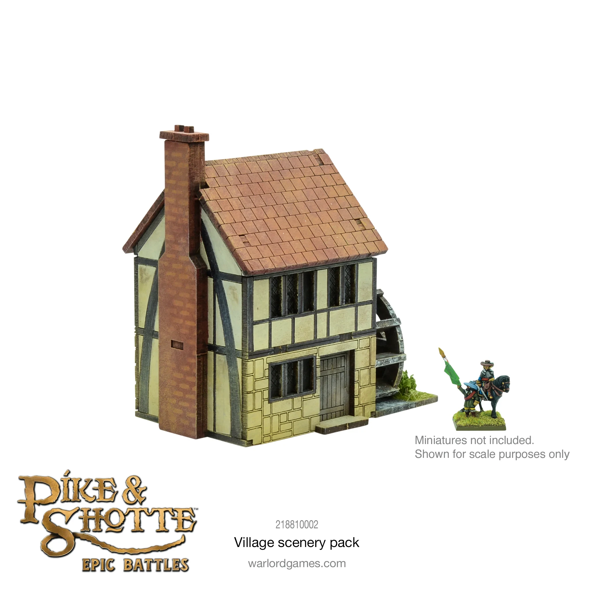 Included in this pack are three laser-cut Pike & Shotte Epic Battles scale building models, including a church, watermill, and windmill, suitable for use during the Thirty Years’ War or English Civil Wars. Use them to add more authenticity to your games set during the Pike & Shotte era.
