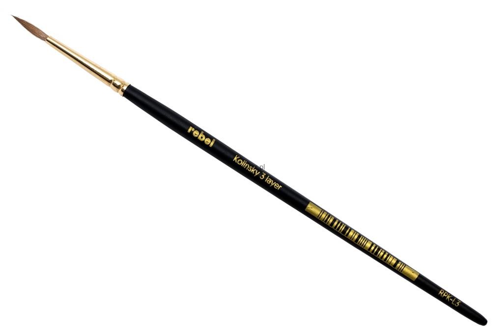 Rebel: Pędzel Kolinsky naturalny - Layer - 3 to wysokiej jakości pędzel do malowania farbami akrylowymi. Wyselekcjonowane włosie łasicy Kolinsky to jedno z najlepszych włosi w zastosowaniu w malarstwie. Spiczasta końcówka, elastyczność włosia oraz duża zdolność utrzymywania farby sprawiają, że jest to pędzel przeznaczony dla malarzy szukających wysokiej jakości produktu.