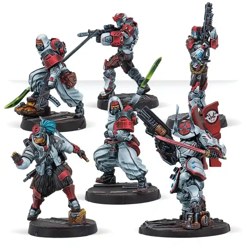 This box includes 6 miniatures: One Genbu Paramedic with Boarding Shotgun, one Genbu with Red Fury, one Sohei with Submachine gun, one Sohei with Pulzar, one Kyosho Hacker with Combi Rifle, and one Daiyokai with HMG. The perfect box to provide Reinforcements to your JSA forces when things go wrong.
