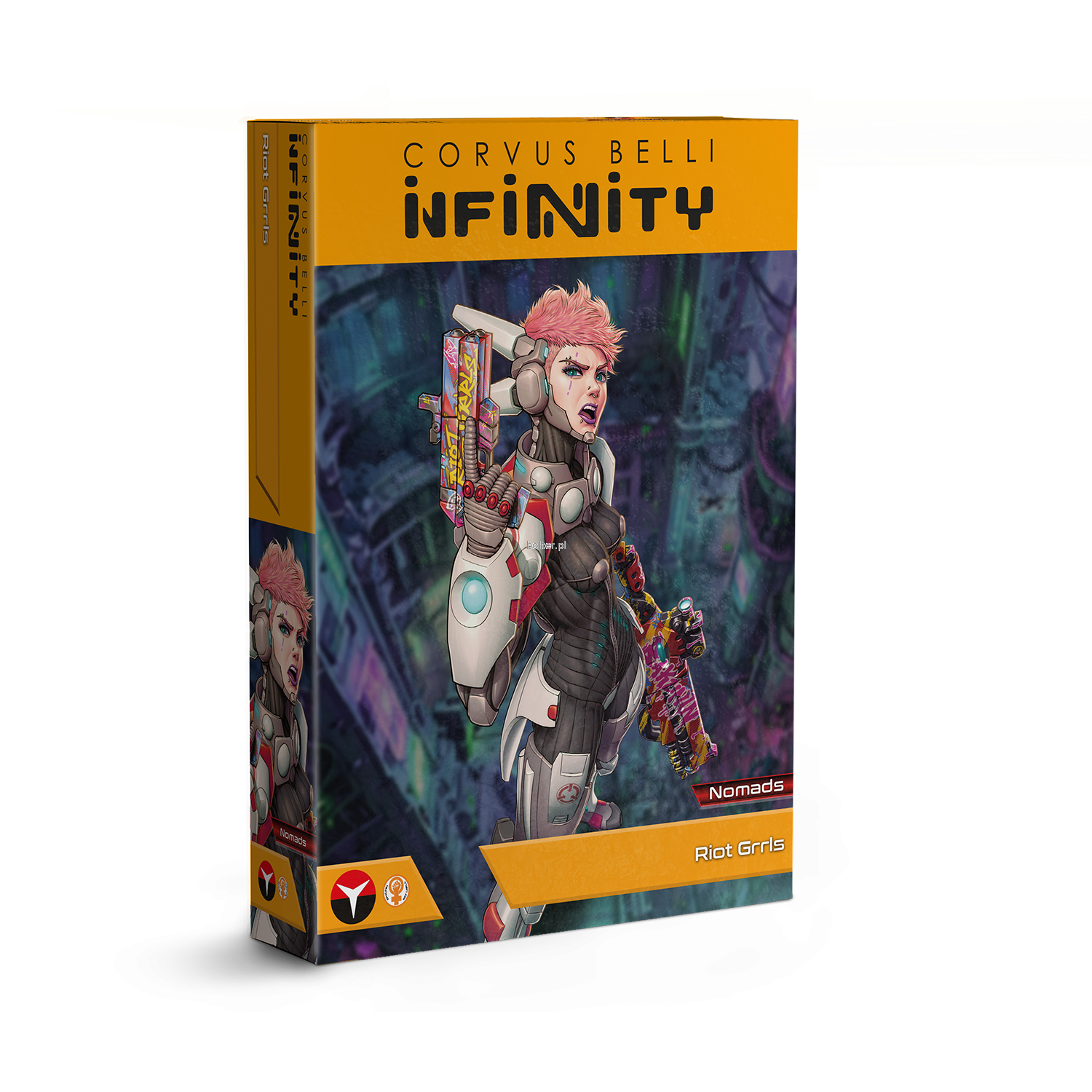 W zestawie znajdują się cztery metalowe figurki: Riot Grrl z karabinem Combi i E/Mitter, Riot Grrl z wyrzutnią rakiet, Riot Grrl ze strzelbą abordażową oraz jeden TinBot. To nowe pudełko z jednostkami Infinity zawiera wszystkie potrzebne opcje uzbrojenia. Teraz możesz skompletować drużynę ogniową z tych ciężkich piechurów z Armii Sektorowej Bakunina.