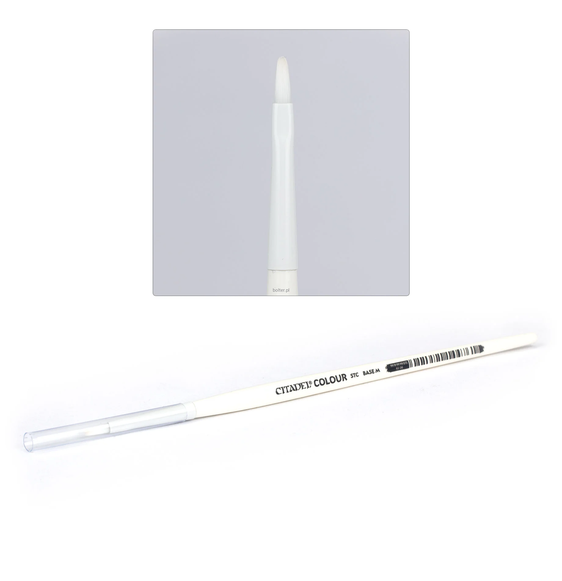 The Citadel Colour STC M Base brush is the perfect workhorse brush for new and veteran hobbyists, featuring a flatter, curved head that gives a smooth and even coat ideal for Citadel Base paints. Turn the brush sideways and the narrow edge is excellent for painting lines and sharp details on your miniatures, making it easier than ever to clean up rough spots and have your paint jobs looking pristine.