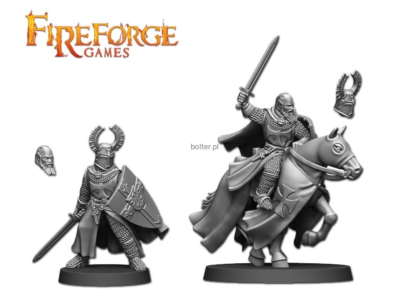 This pack contains 2 Leader (mounted and on foot version) , 1 barded horse, 2 head options (for each model), 1 25mm x 50mm plastic base and 1 20mm x 20 mm plastic base.