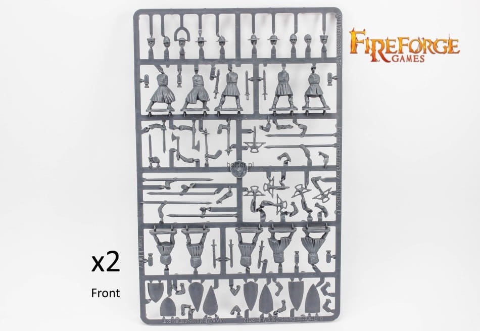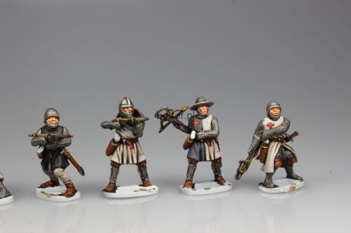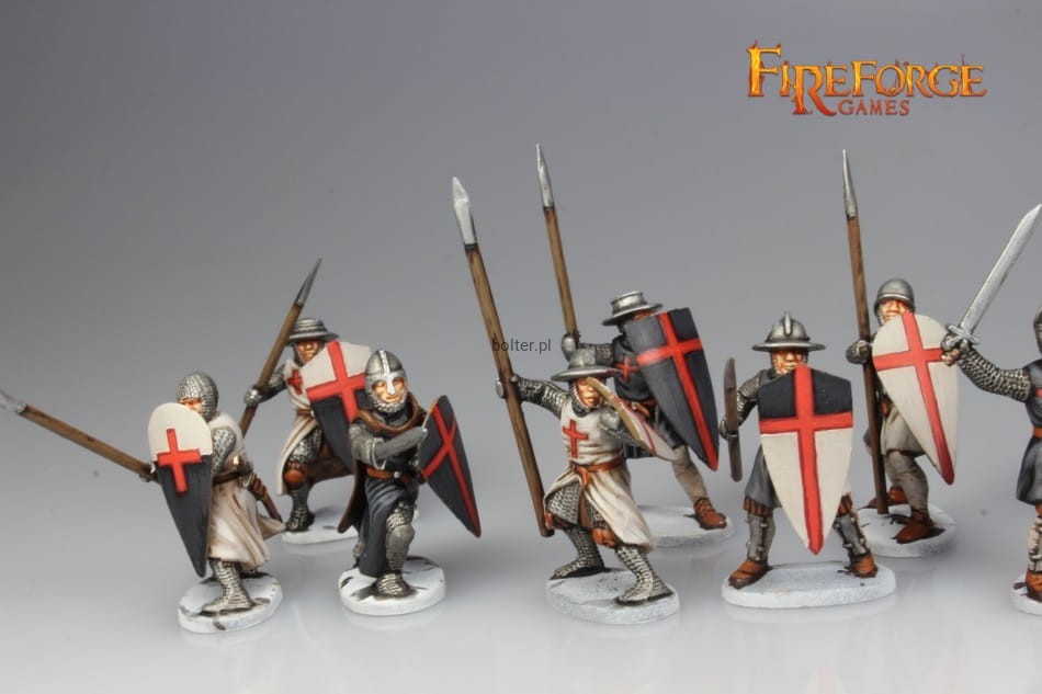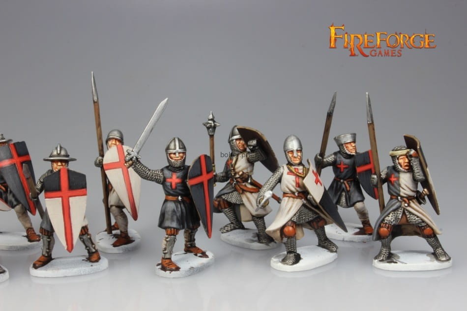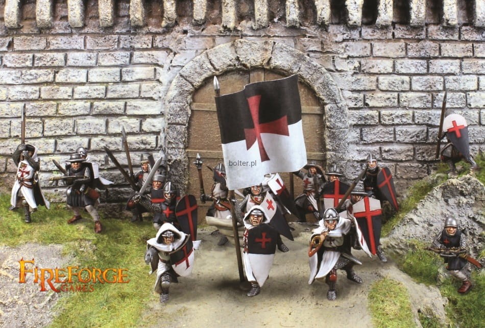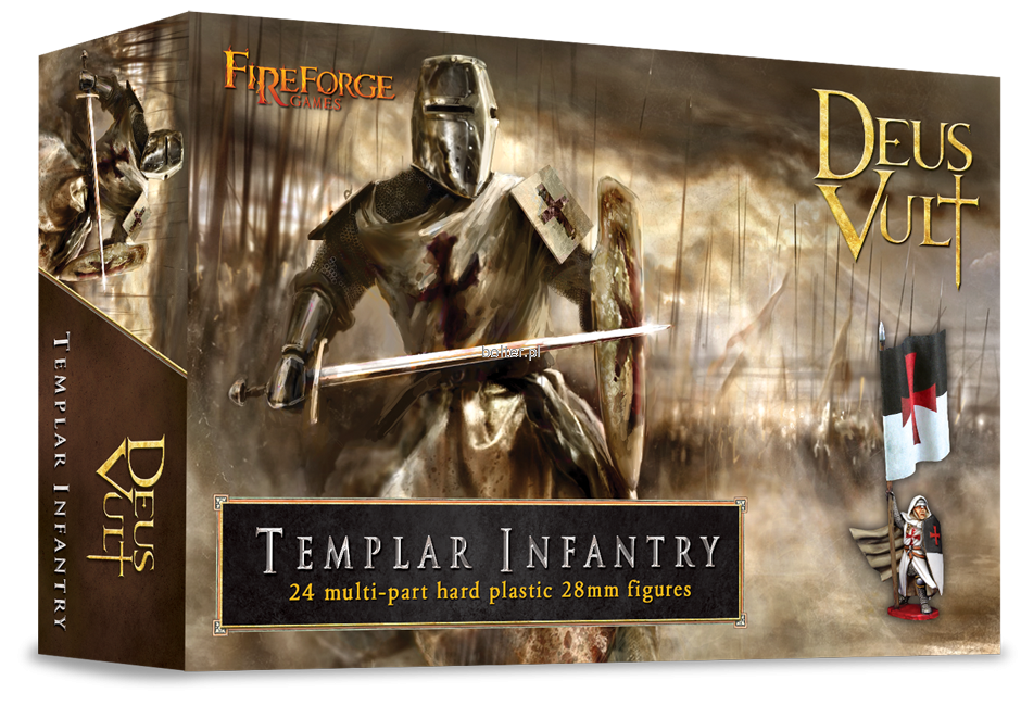 This box contains twenty-four multi-part plastic Templar Infantry soldiers in heavy armour of the 12th/13th century. Several weapons options are included - like spears, swords, axes, maces and crossbows. You will be able to build up to 12 crossbowmen and/or up to 24 Templar Sergeants figures.