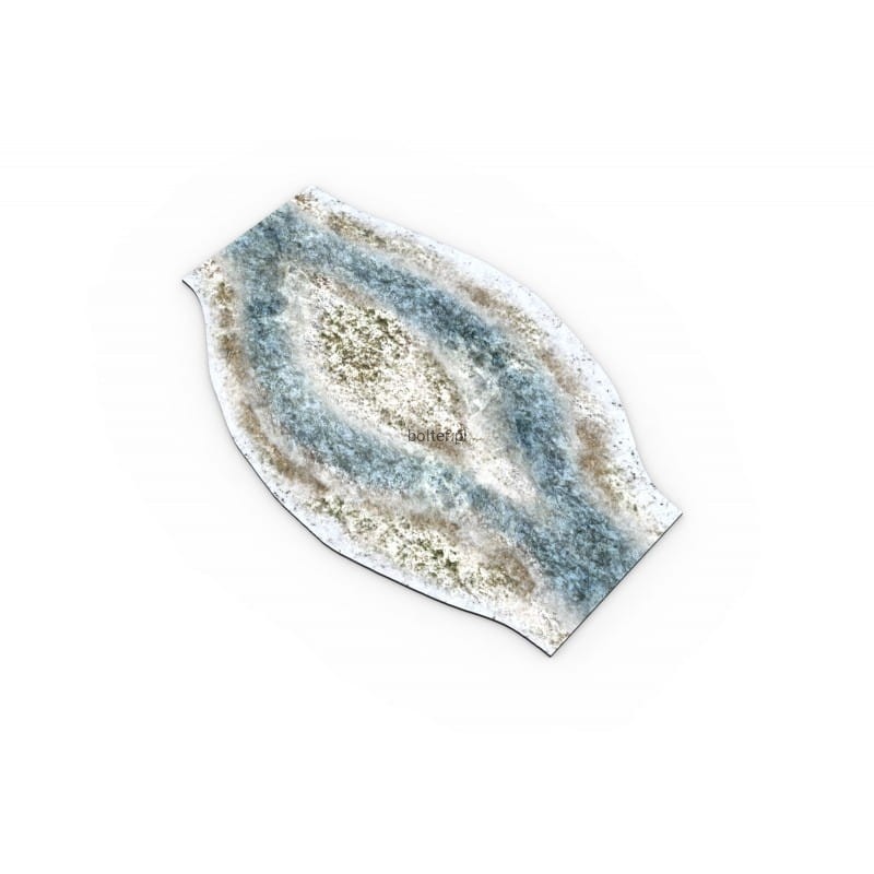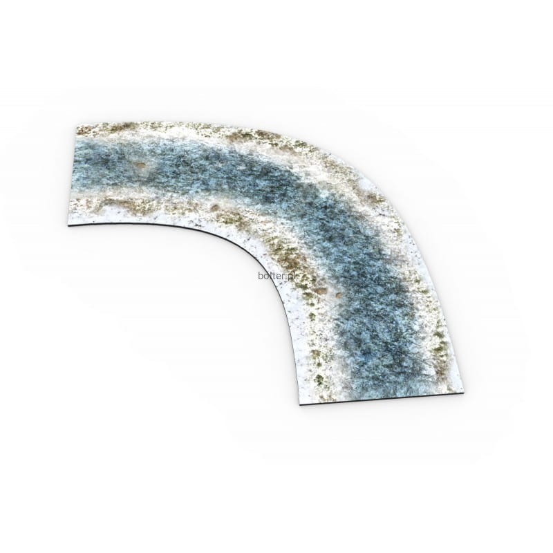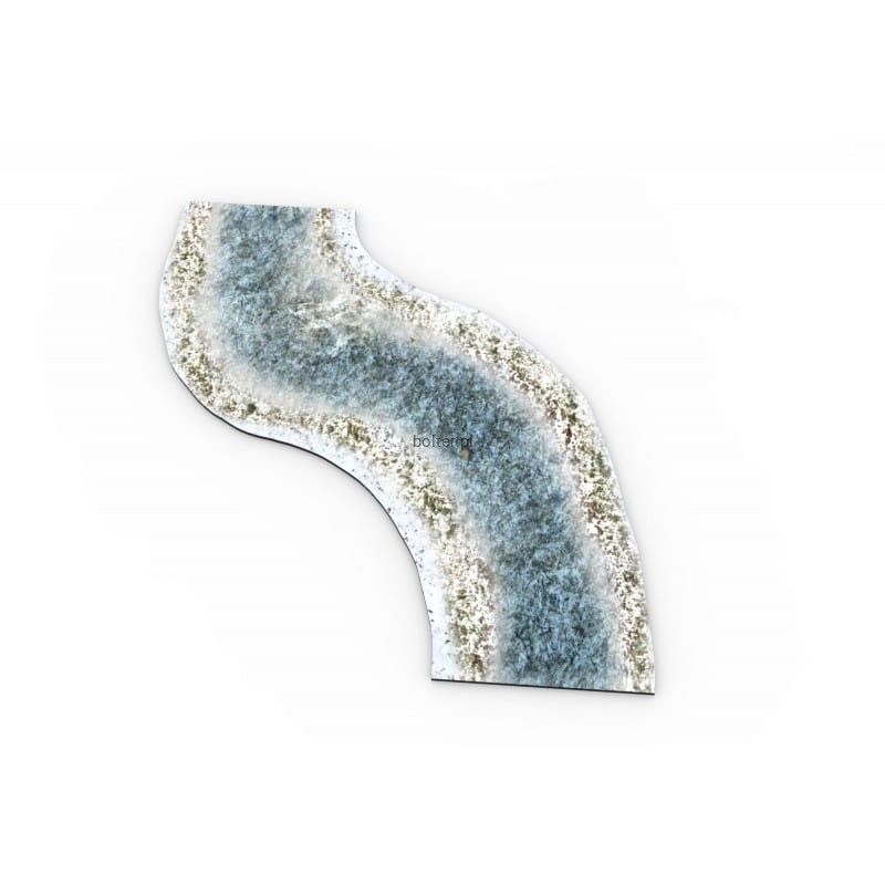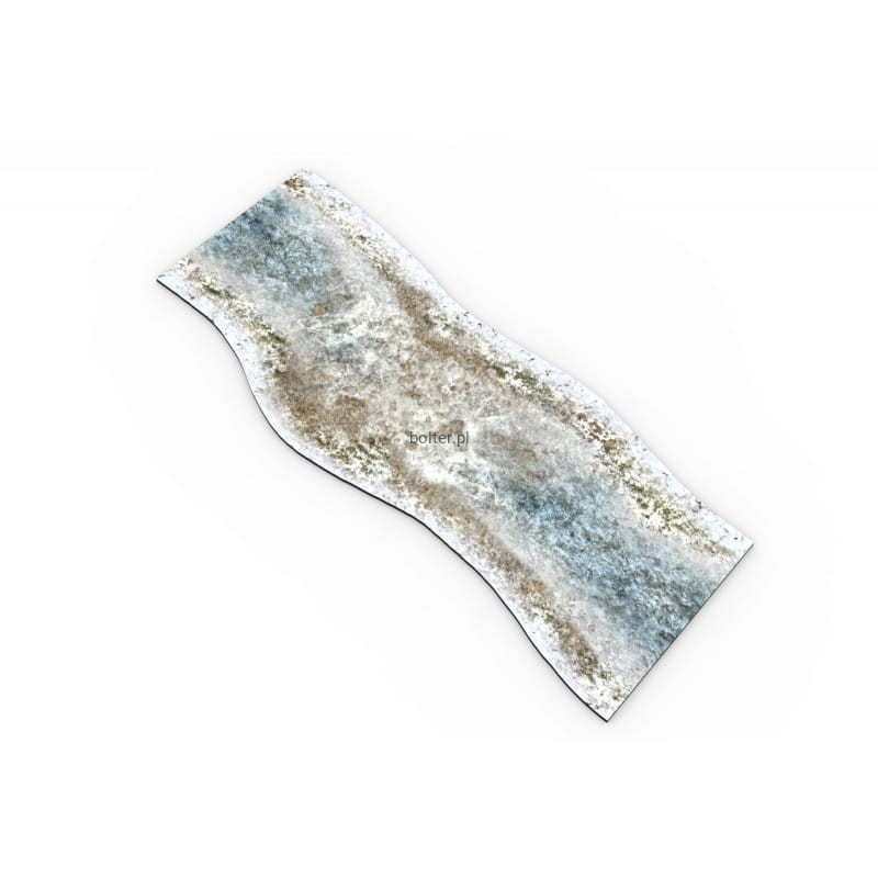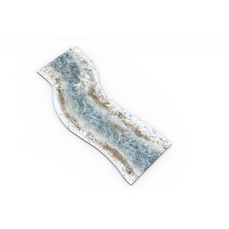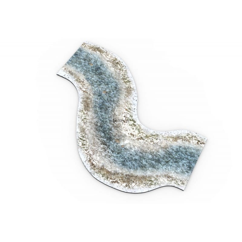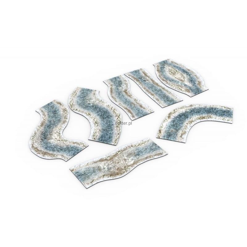 Komplet siedmiu modułowych rzek 2D wykonanych z antypoślizgowej gumy o grubości 2mm. Każdy prosty segment ma długość ok 30 cm i szerokość w punkcie łączenia ok. 10 cm; zakręt ma ok. 26x26 cm.